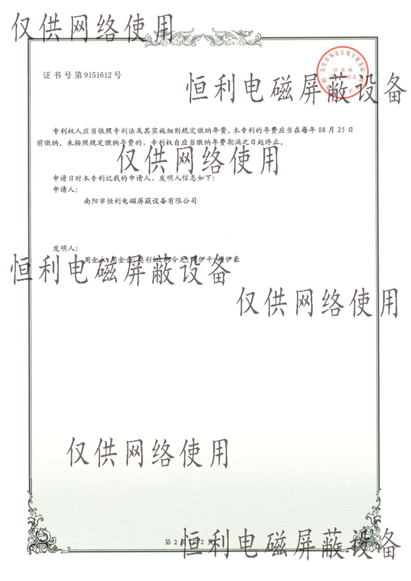 自動打開關(guān)閉鎖緊電磁屏蔽門專利證書展示